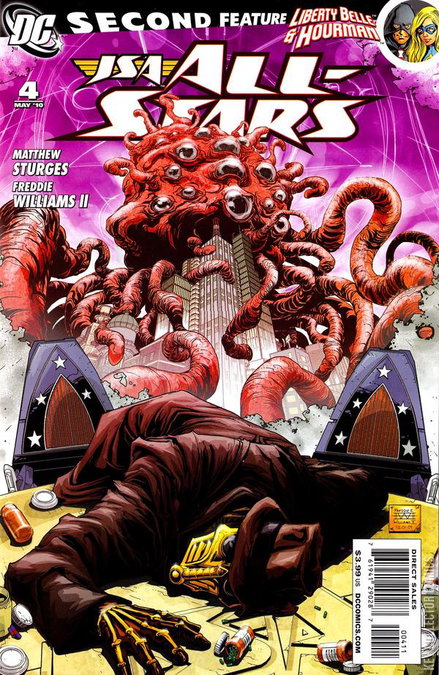 The All-Stars are forced to team with the Injustice Society against Johnny Sorrow's unearthly accomplice! And only Star Girl knows what she must sacrifice to save friend and foe alike! The hero and villain team-ups continue in the co-feature, as Liberty Belle and Hourman join their proven enemies Tigress and Icicle, who hold essential clues as to the whereabouts of the ancient mysticism embodied in the Staff of Life!