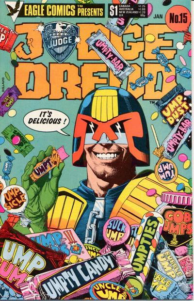 The original US reprint series from Eagle Comics reprinting the best Judge Dredd stories from UK anthology comic 2000AD. This was the first issue of the series available in UK newsagents.Cover: Brian Bolland (Judge Dredd)The Ape Gang (prog 39) (John Wagner - Mike McMahon)Christmas Comes to Des O'Connor Block (prog 144) (John Wagner - Mike McMahon)Uncle Ump's Umpty Candy (prog 145) (John Wagner - Mike McMahon)Judge Minty (prog 147) (John Wagner - Mike McMahon)Block War (prog 182) (John Wagner and Alan Grant - Brian Bolland)