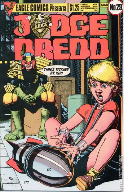 The original US reprint series from Eagle Comics reprinting the best Judge Dredd stories from UK anthology comic 2000AD.Cover: Brian Bolland (Judge Dredd)The DNA Man (progs 113-115) (John Wagner - Brett Ewins)The Guinea Pig that Changed the Law (prog 126) (John Wagner - John Cooper)The Great Plasteen Disaster (prog 139) (John Wagner - John Cooper)New Year is Cancelled (prog 146) (John Wagner - Brendan McCarthy)