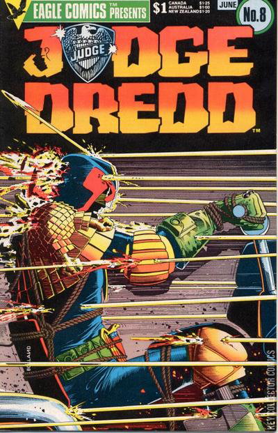 The original US reprint series from Eagle Comics reprinting the best Judge Dredd stories from UK anthology comic 2000AD.Cover: Brian Bolland (Judge Dredd)Cursed Earth (parts 20-24) (progs 80-84) (John Wagner (part 20) and Pat Mills (parts 21-24) - Mike McMahon (parts 20, 23-24) and Brian Bolland (parts 21-22))