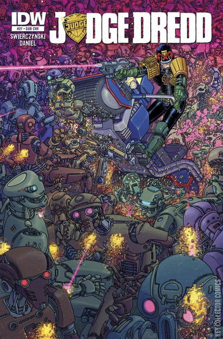 'Mega-City Manhunt, part 3' A frantic Chief Justice Cal resorts to drastic measures to capture the fugitive Judge Dredd-deputizing every single citizen as a street judge for a 24 hour period! The citizen-judge who takes down Dredd will win cold hard cash, free healthcare for life, and his/her own reality show. But the plan breaks down when too many citizens take the law into their own hands.