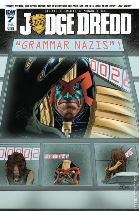 Mega-City Zero, Part 7! Dredd and his companions enter the Zone of Correction, where everything has a rule attached, in 'Grammar Nazis'!