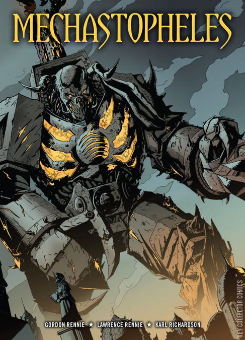 Judge Dredd » Project Providence (part 1) Mega-City One, 2143 AD. This vast urban hell on the east coast of post-apocalyptic North America is home to over 160 million citizens. Stemming the tide of chaos are the Judges, future law-enforcers empowered to dispense instant justice. Toughest of them all is Judge Dredd – he is the Law! Now, Tek-Div has been utilising scientists from other cities to develop chrono-tech... Devlin Waugh » The Reckoning (part 2) Brit-Cit, 2142 AD. A freelance paranormal troubleshooter and exorcist for the Vatican, Devlin Waugh is the world’s foremost supernatural investigator. Despite becoming a vampire after getting bitten tackling an outbreak in an underwater prison, Devlin continues to enjoy the finer things in life. Having recently befriended a demon, Tittivillus, he’s become suspicious of it... Diamond Dogs » Book 2 (part 3) Brit-Cit, 2142 AD. The remnants of old Britain still exist alongside the twenty-second century Mega-City, and these ruins are fought over by the Brit-Cit street gangs, who see them as valuable territory. Nia Jones used to run with the Diamond Dogs, but she was also a Justice Dept informer, often playing both sides against each other. Now, though, the Dogs have disbanded... The Returners » Amazonia (part 2) South-Am, 2142 AD. Four different people in Ciudad Barranquilla – academic Barrancourt, Ex-Judge Mineiro, gangbanger Correira, and transgender street-walker Chavez – all awoke from near-death experiences, and as a consequence encounter supernatural entities. Now, after being trapped in a eerie house in Brit-Cit, they’ve been transported back to their home country... The Dark Judges » Deliverance (part 10) After the events on the Mayflower, the cargo ship the Solips discovered the Dark Judges Death, Fire and Mortis floating in space, and the alien superfiends murdered the crew. They subsequently also decimated a colony, Dominion, and when marines were sent in, they were joined by Fear. Dominion was destroyed, and Death was trapped in a Boing® bubble... + this issues bagged comic is: Mechastopheles by Gordon Rennie/Lawrence Rennie and Karl Richardson!