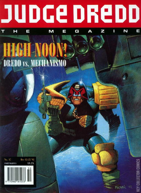 Cover: Colin Macneil (Judge Dredd)Judge Dredd - Mechanismo (part 6 - final part) (John Wagner - Colin Macneil)Judge Hershey - Deathsquads (part 4 - final part) (Peter Cornwall - Yan Shimony)Armitage - Influential Circles (part 8) (Dave Stone - Charlie Adlard)Al's Baby - Blood on the Bib (part 2) (John Wagner - Carlos Ezquerra)