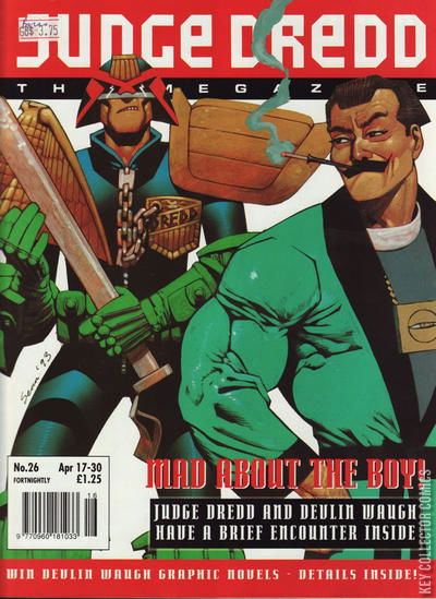 Final episodes for all stories this issue to make way for a new line-up from issue 27.Cover: Sean Phillips (Judge Dredd - Devlin Waugh)Judge Dredd - Mechanismo Returns (part 5 - final part) (John Wagner - Peter Doherty)Sleeze 'n' Ryder (part 7 - final part) (Garth Ennis - Nick Percival)Judge Hershey - Asylum (part 2 - final part) (Robbie Morrison - Siku)Judge Dredd and Devlin Waugh - Brief Encounter (John Smith - Sean Phillips)