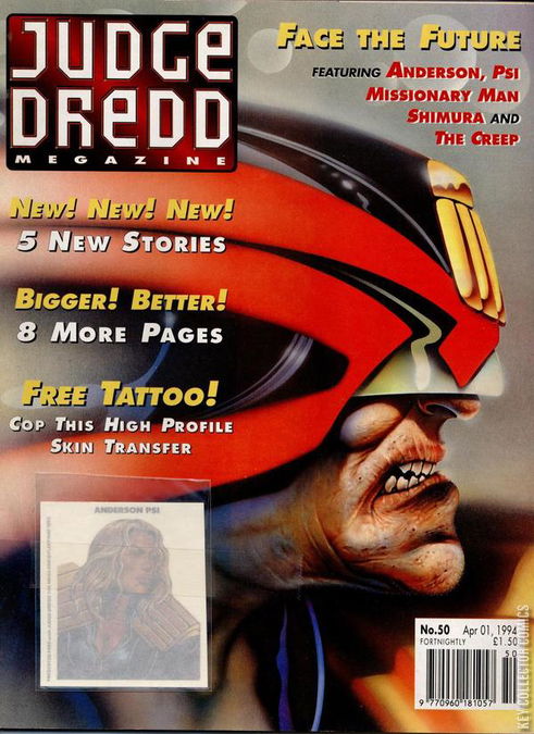 Cover: Mark Wilkinson (Judge Dredd)Judge Dredd - Giant (part 1) (John Wagner - Ian Gibson)Shimura - Outcast (part 1) (Robbie Morrison - Colin Macneil)Missionary Man - Bad Moon Rising (part 1) (Gordon Rennie - Frank Quitely)Creep - Creep's Day Out (Si Spencer - Kevin Cullen)Judge Anderson - Postcards from the Edge (part 1) (Alan Grant - Steve Sampson)