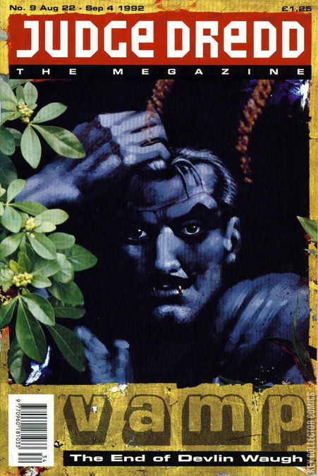 Final episodes for all stories. From the next issue there's a slight change in format (the comic size increases) and there's an all-new line-up of stories.Cover: Sean Phillips (Devlin Waugh)Judge Dredd - Judgement Day (part 18) (Garth Ennis - Dean Ormston)The Soul Sisters (part 8 - final part) (David Bishop and Dave Stone - Shaky Kane)Devlin Waugh - Swimming in Blood (part 8 - final part) (John Smith - Sean Phillips)Judge Hershey - Down Time (Dave Stone - Paul Peart)