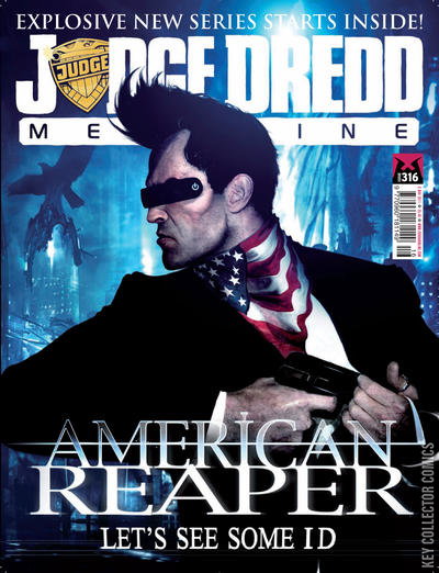 More action and adventure in the future-shocked world of Judge Dredd! Having escaped from his captors, a former slave seeks vengeance in Unchained by Mike Carroll and John Higgins; Cursed Earth Koburn and Judge Rico plunge deeper into Gila Bruja madness in Going After Billy Zane by Gordon Rennie and Carlos Ezquerra; and enter into a world of extreme identity theft in the opener of the mindblowing American Reaper by Pat Mills and Clint Langley. + this issues bagged comic is: Mercy Heights comes to its galaxy-shaking climax by John Tomlinson, Trevor Hairsine, and Lee Sullivan!