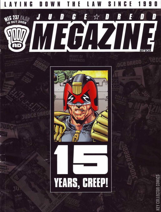 Fifteenth anniversary edition (1990 - 2005).Cover: Cliff Robinson (Judge Dredd)Judge Dredd - Flood's Thirteen (John Wagner - Henry Flint)15 Years, Creep! - The History of the Megazine (part 1) (David Bishop)Devlin Waugh - All Hell (part 6 - final part) (John Smith - Colin Macneil)15 Years, Creep! - The History of the Megazine (part 2) (David Bishop)The Simping Detective - Fifteen (Simon Spurrier - Frazer Irving)