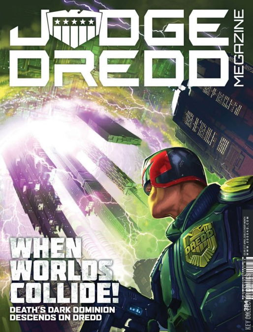 Episodes include: Judge Dredd » Krong Island (part 3) Mega-City One, 2140 AD. This vast urban hell on the east coast of post-apocalyptic North America is home to over 72 million citizens. Stemming the tide of chaos are the Judges, empowered to dispense instant justice. Toughest of them all is Judge Dredd – he is the Law! Advances in science in the 22nd century have led to intelligent apes now having their own society in the metropolis... The Returners » Irmazhina (part 1) Ciudad Barranquilla, 2140 AD. This South American metropolis, sometimes referred to as ‘Banana City’, is a notoriously poor and corrupt enclave, ruled over by a Justice Department in the pockets of the cartels. Life on its streets can be short and violent, but for four very different people death is not the end but the start of something terrifying... Lawless » Breaking Badrock (part 6) Colonial Marshal Metta Lawson was appointed to the frontier township of Badrock on the planet 43 Rega, intent on stamping her authority on the colony. But in doing so, Lawson made many enemies, including Munce, Inc., the mega-corporation that funds Badrock, which has attempted to have her killed. Now, Munce is planning to dispose of Badrock once and for all... Cursed Earth Koburn » The Law of the Cursed Earth (part 3) The Cursed Earth, 2140 AD. Cool and calculating Judge-Marshal Koburn is a future lawman unlike any other. A circuit Judge for the radlands, he patrols the outposts and townships that eke out a living in these desolate wastes, and tries to maintain the peace in an otherwise chaotic environment. There’s little law and order in the Cursed Earth, and Koburn likes to take it eazy... DREDD » The Dead World (part 3) Mega-City One, the cusp of the 22nd century. Eight hundred million people are living in the ruin of the old world, a planet devastated by atomic war. Only one thing fighting for order in a metropolis teetering on the brink of chaos – the men and women of the Hall of Justice. One such lawman is Judge Joe Dredd, who is about to be confronted with his strangest and most challenging case yet...