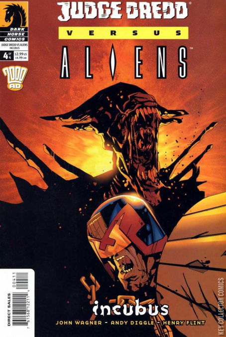 Spreading up from the Undercity, an infestation of the Aliens threatens Mega-City One. While Judge after Judge goes down in battle, Dredd and his assault squads make little progress, even with the assistance of the Mechanismo Droids. Despite being impregnated by a facehugger, Judge Dredd faces off against the enraged, anti-Judge leader, Mister Bones, and his mutant henchmen. As Dredd's forces hope to curtail the Alien invasion with pheromone tags and a mini-nuke, will Dredd live to see the final battle? Or will the Alien embryo in his stomach be the end of him? Judge Giant says, "Drokk! Alien frenzy!" Be here for the ferocious finale, brought to you through a collaboration between Dark Horse Comics and Britain's award-winning sci-fi anthology 2000 AD.