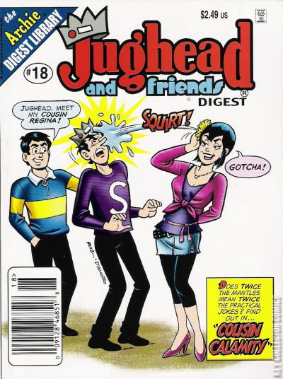 "Cousin Calamity!": Look out guys, Reggie's cousin Regina is in town, and she's a knockout. She's also as devious and mischievous as Reggie, which the guys soon learn as she makes fools out of them with one practical joke after another! All except one: Jughead. Can Regina fool Jughead with one of her patented gags, and is there a possibility of romance with the crowned one? With bonus puzzles, games, and your chance to “Find Your Name in Print!”