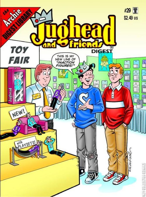When marketing research shows teens are overscheduled and overstressed, Mr. Lodge decides what his company needs is an in-action figure - and what better model for it than Jughead! Then, Jughead's reached the bottom of his pockets, and even his pockets' holes have holes! But there's 'A Change of Fortune,' in the form of a comic shop giving away cash prizes! Guest-starring the owners and employees of Hi De Ho Comics! Plus, other new and classic tales, games, pin-ups, and puzzles!