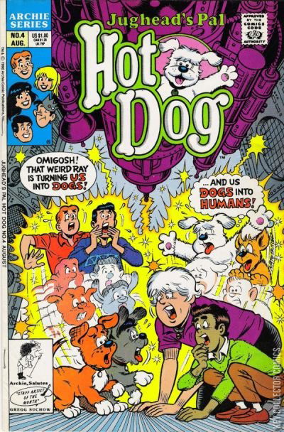 Hot Dog and Pablito use a transmogrifier to make themselves into humans, but unknown to them it also turns Archie and Reggie into dogs.