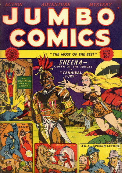 Cover by Bob Powell. Edited by Malcolm Reiss, Jerry Iger and Will Eisner. Stories and art by Will Eisner, Jerry Iger, Lou Fine, George Tuska, Dan Zolnerowich, Charles J. Mazoujian, Charles Wotjkoski, Nick Cardy, Charles Sultan, Bob Kane and Bob Powell. An influential anthology starring jungle hero Sheena, featuring early art by legendary comics artists in the Eisner-Iger Shop. Sheena battles cannibals; Lightning tracks a band of saboteurs hired by a foreign government; A reprint of the Bob Kane Peter Pupp story from issue #1. Peter Pupp; The Hawk; Weird Stories of the Supernatural; Bobby; Uncle Otto; The Count of Monte Cristo; Sheena, Queen of the Jungle; Ken Hammond; ZX-5 Spies In Action; Inspector Dayton; Lightning; Wilton of the West. 64 pages, Full Color.