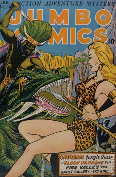 Last 52 page issue until the format resumes in #84. In order of appearance: "Sheena, Queen of the Jungle" and "ZX-5: Spies in Action" art by Robert Webb; "Sky Girl" art by Matt Baker; "The Hawk" and "Stuart Taylor in Weird Stories of the Supernatural" art by Robert Webb; and "The Ghost Gallery" art by Alex Blum. "Murder Bell" text story by Audrey Anthony "Toni" Blum (as Tom Alexander).