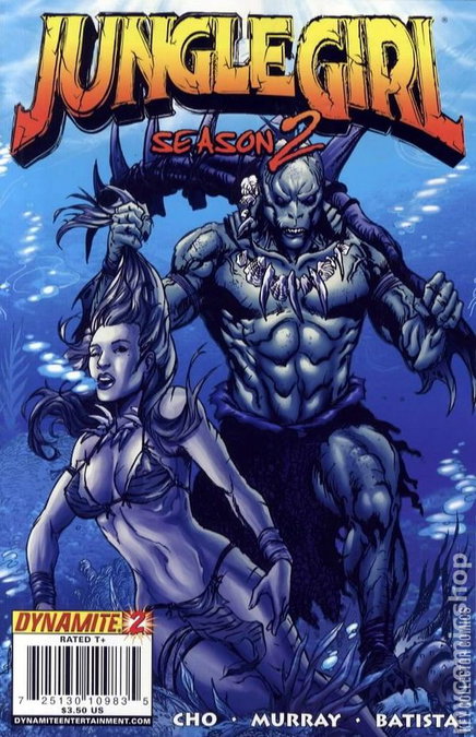 Dynamite's Jungle Girl series returns! Again under the direction of cover artist/co-plotter Frank (Avengers) Cho, co-plotter/writer Doug (The 'Nam, SAVAGE TALES) Murray and interior artist Adriano (RED SONJA) Batista! Explore the underwater world in our second season, as Cho and Murray are taking the action underground, and underwater as more clues regarding Jana, the undisputed Queen of the Jungle, finds out more about her mysterious past, and the mysterious island she call home! Featuring three covers per issue, one by the incomparable Frank Cho and the other two by Adriano Batista and Frank Martin Jr.!