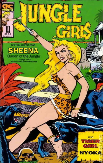 Cover by Maurice Whitman and Bill Black. Edited by Bill Black. Stories by Bill Black, Allan OHara, and Rod Reed. Art by Robert Webb, Ken Battefield, and Al Jetter. AC Comics reprints classic jungle-girl stories that originally appeared in comics from the Golden Age, along with some new ones. Sheena, Queen of the Jungle battles an ivory poacher who conspires with a witch doctor to enslave tribal natives; Treasure hunters trick a visiting scientist and accidentally start a war between two tribes; Ivory hunters scheme to steal the Maharajah's pink elephants, but they didnt reckon with Nyoka the Jungle Girl. Jungle Girls; Sheena, Queen of the Jungle; Tiger Girl; Tropical Heat; Nyoka the Jungle Girl and the Missing Pink Elephants.