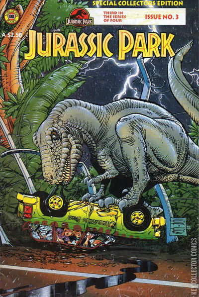 Based on the movie.Face-To-Face with T-Rex!Variant:- no code on cover - pic 2- Special Collectors Edition (bagged w/cards) - pic 3Death of Donald Gennaro.