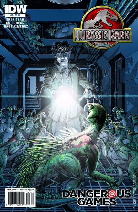 Agent Espinoza is being hunted on Jurassic Park, both by dinosaurs and a blood-thirsty drug cartel. Tired, hungry and sick of being the prey, a desperate Espinoza decides to flip the tables and start getting crafty! The end result is a battle to the death at the top of a waterfall with deadly dinos on all sides. It's maximum Jurassic action in this issue of Dangerous Games!