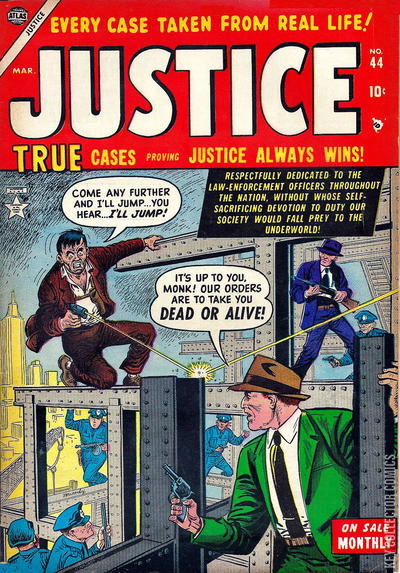 Home / Atlas / Justice / Justice #44 Atlas Released March 1954 Justice #44 Add to Collection Want It Synopsis No synopsis available. Issue 44 of 52 Add to Collection Buy it on eBay Buy on eBay Low $25 Mid $75 High $250 Synopsis No synopsis available. Details Series Justice Cover Date March 1954 Pages N/A UPC N/A Cover Price N/A Final Order Cutoff N/A Creators No creators listed. Price Guide Log in or subscribe to access detailed graded price information and market insights. Log In Subscribe