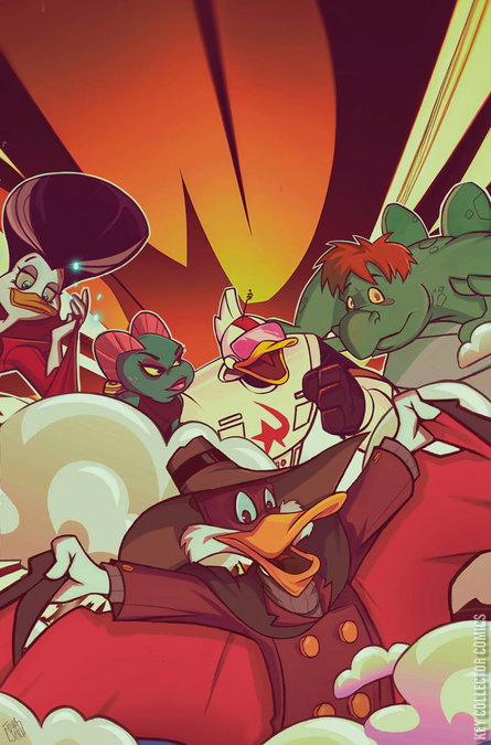 Darkwing Duck Is Teaming Up - Whether He Likes It or Not! Foes of evil! Enemies of injustice! To the mighty heroes of the JUSTICE DUCKS, all bad guys are a total bummer and must be taken down - even if said bad-o's are from OUTER SPACE! In this thrilling maiden issue: Flying saucers descend from the skies, to (maybe) wreak (possible) havoc upon the (mostly) innocent citizens of St. Canard! All that's stopping these aggressive alien agitators is STEGMUTT, GIZMODUCK, NEPTUNIA, MORGANA, and (most important, in his opinion) DARKWING DUCK! Written by the Eisner and Harvey Award-winning ROGER LANGRIDGE and illustrated by celebrated Darkwing Duck artist CARLO LAURO, this latest chapter in the ongoing saga of St. Canard's web-footed wonders is surely destined for greatness - just like DD himself!