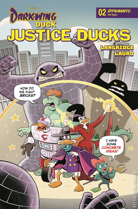 Strange robots have flooded the streets of St. Canard, and only THE JUSTICE DUCKS can save the day! But even the combined might of STEGMUTT, GIZMODUCK, NEPTUNIA, MORGANA, and (of course) DARKWING DUCK may not be enough to stop the robots' master: THE BOTHERER, who wants to transform innocent people into horrible stone creatures that will enable him to take over the city - and eventually the world! Delineated by Eisner and Harvey Award-winning author ROGER LANGRIDGE and definitive Darkwing Duck artist CARLO LAURO, Justice Ducks #2 also features arresting cover art from MIRKA ANDOLFO, ROGER LANGRIDGE, FRANCESCO TOMASELLI, and TRISH FORSTNER!