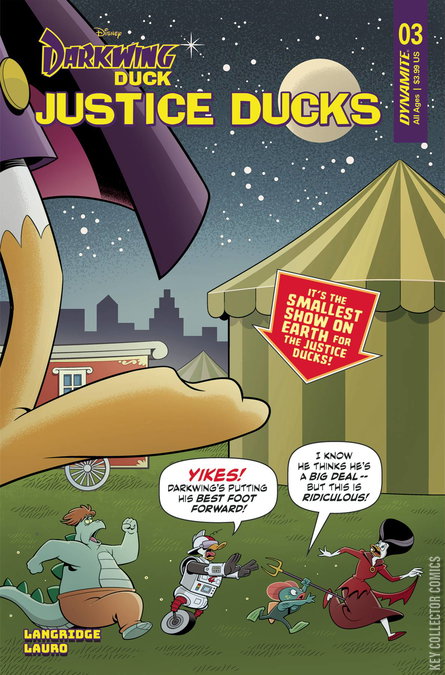 MAKEWAY! DARKWING DUCK IS HUGE! Wait�is Darkwing huge, or are THE JUSTICE DUCKS tiny? It's madcap alien-based tomfoolery by ROGER LANGRIDGE (The Muppets) and CARLO LAURO (Darkwing Duck)!