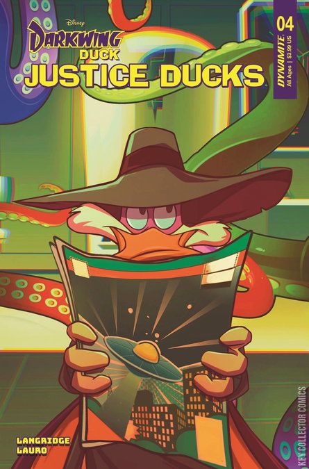 Gosalyn makes a new friend! He's nice, but kinda odd� maybe a little strange� OK, he's an alien. An alien hiding out on Earth, for mysterious reasons. And when those 'mysterious reasons' show up to take Gos's new friend, the JUSTICE DUCKS are in a pickle. Do they let the authoritative aliens do their thing, or do they protect the slightly strange alien kid from evil forces? Find out in Justice Ducks #4, judiciously filed by award-winning writer ROGER LANGRIDGE and Darkwing Duck artist CARLO LAURO, and featuring cover affidavits from LANGRIDGE, MIRKA ANDOLFO, FRANCESCO TOMASELLI, and TRISH FORSTNER! ALL COVERS CARDSTOCK
