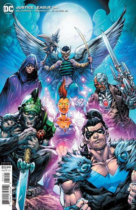 DOOM METAL, PART TWO It’s the Titans reunion you've been clamoring for when Starfire and Cyborg join Nightwing in this twisted Justice League. The team is hell-bent for Brimstone Bay to free the Legion of Doom, but what horrors and desires will the Valley of Starros reveal to them—and who or what is the villain named Mindhunter? DARK NIGHTS: DEATH METAL TIE-IN