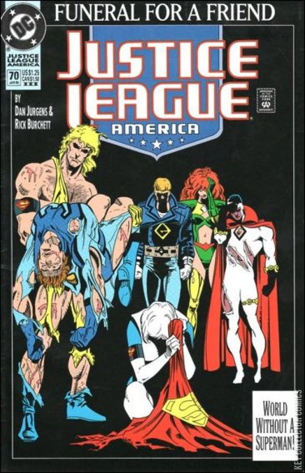 FUNERAL FOR A FRIEND TIE-IN - GRIEVING Continued from Superman #75 Injured and devastated, the League struggles to stay together in the aftermath of Superman's death. Continues in Adventures of Superman #498