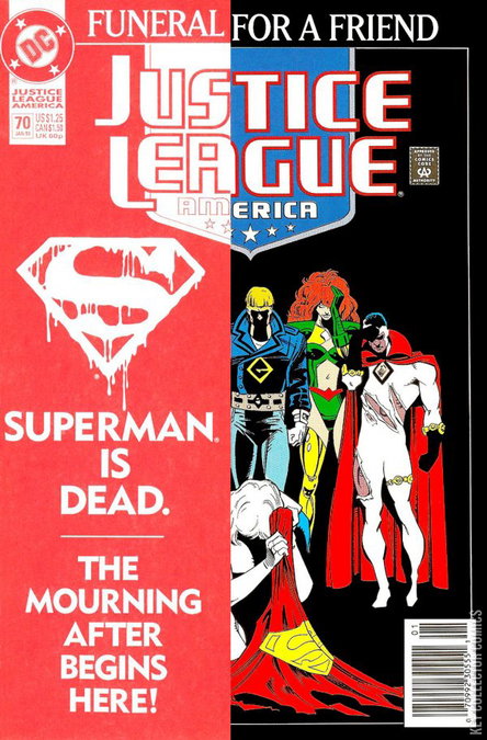 FUNERAL FOR A FRIEND TIE-IN - GRIEVING Continued from Superman #75 Injured and devastated, the League struggles to stay together in the aftermath of Superman's death. Continues in Adventures of Superman #498