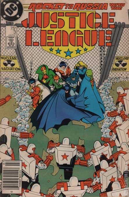 "Meltdown" Colonel Rumaan Harjavti suggests Russia's nuclear weapons be the next target for Wandjina, Silver Sorceress and Bluejay. Harjavti thinks he is cleverly tricked the three superhumans into weakening his enemies, clearing a path for world domination. Though the three are not fooled they cannot resist going into Russia to rid the world of their nuclear weapons. Meanwhile, the Justice League hover in Blue Beetle's Bug just outside of Bialyan airspace. Blue Beetle finally picks up the three strangers on the Bug's sensors and the League follow them into Russia. The Bug is noticed and two units of the Rocket Red Brigade are dispatched to intercept the Bug. Guy Gardner disobeys Batman's orders and engages the Brigade. In Moscow, Mikhail Gorbachev receives a phone call from Maxwell Lord and orders that all hostilities toward the Justice League cease and all units of the Rocket Red Brigade be rerouted to deal with Wandjina, Silver Sorceress and Bluejay. Missile bases, nuclear subs and nuclear power plants all go on red alert. In the panic, one of the power plants mistakes are made and a core meltdown in imminent. The Rocket Red units battling the Justice League get their orders, cease fighting and ask the League for assistance. When the League reaches the power plant Wandjina, Silver Sorceress and Bluejay are going head to head against a unit of the Rocket Red Brigade. The battle stops as soon as it starts when the cooling towers begin to tremble from the meltdown. It seems that nothing can be done then suddenly Wandjina breaks through into one of the cooling tower. He emerges moments later having contained the meltdown somehow. After declaring that everything is safe he collapses. The Russians take control of the situation and take Wandjina away for treatment followed by Silver Sorceress and Bluejay. Rocket Red 1 informs the Justice League that their help is no longer needed and orders them to leave the country promptly. When the League returns to headquarters they are shocked...