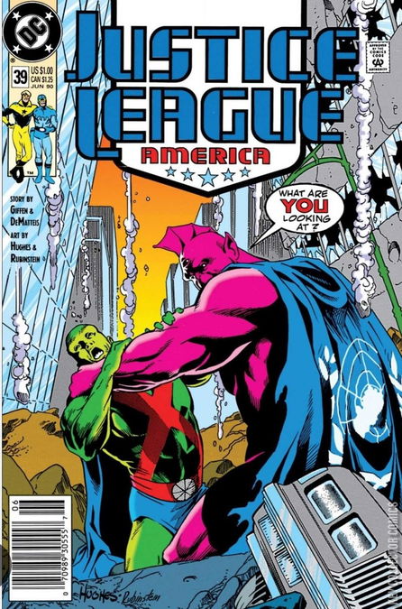 "Blow Up" Despero and Martian Manhunter do battle. Despero gets the upper hand when he gets into Manhunter's head and makes him relive the death of his family.� Luckily Guy Gardner shows up and knocks Despero far enough that Manhunter can come to his senses. After learning the Despero killed Gypsy's family Guy flies after him. The battle goes from the ocean to downtown Manhattan. There the rest of the League gets involved. Just when the League seems to have Despero on the ropes he turns his third eye on Mr. Miracle's ship seemingly killing the hero.� Back with Gypsy, Manhunter reveals the only was to stop Despero is to give him what he wants.