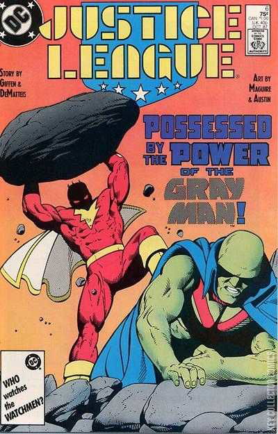"Massacre in Gray" The Justice League looks in awe at what the Creeper shows them what has become of the town of Stone Ridge, Vermont. The entity only known as the Gray Man has transformed the town into something completely alien. The people of Stone Ridge are all in a comatose state; an effect of being touched by one of the Gray Man's "copies". The Gray Man himself is holed up in the town movie theater where he has Doctor Fate and Captain Marvel captive in magical bonds. And he knows the the the rest of the Justice League is here to try and stop him. The League and the Creeper explore the town looking for the Gray Man. Captain Marvel appears, mind controlled by the Gray Man, and attacks the team. Batman orders the Martian Manhunter to deal with Marvel and the rest of the team to search the town for the Gray Man. As the Martian Manhunter and Captain Marvel battle, J'onn J'onnz strikes out telepathically at the Gray Man and Captain Marvel resists the mind control. This causes the Gray Man to loosen his grip on Marvel's mind and J'onnz knocks Marvel out cold before he realizes that Marvel is free. Elsewhere, Hal Jordan and Maxwell Lord argue over some deal that has been worked out. Lord has some mysterious idea that he needs Jordan's help with. Jordan is resistant, but seems like he will help. Back in Stone Ridge, the Creeper points the League to the theater where the Gray Man and Doctor Fate are. When the team enters they see that the two are commenced in magical combat. The Gray Man was weakened by the battle of the Martian Manhunter and Captain Marvel. Doctor Fate took advantage there to escape his bonds and attack the Gray Man. The Gray Man summons more of his copies who attack the League and put them into a comatose state. Now Doctor Fate stands alone against the Gray Man and dozens of his copies. Doctor Fate realizes that there is no helping the Gray Man and no longer pulls his magical punch. He casts a spell that makes the theater and everything in vanish. The Martina Manhunter witnesses this and surmises that they were teleported someplace else, maybe another dimension. He still needs to tend to the fallen Captain Marvel so he flies him to help. But he will return. The theatre is playing The Living Daylights, starring Timothy Dalton.