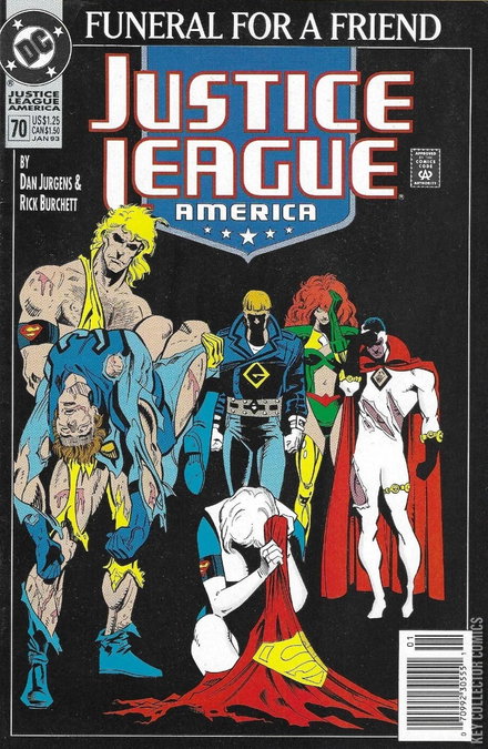 FUNERAL FOR A FRIEND TIE-IN - GRIEVING Continued from Superman #75 Injured and devastated, the League struggles to stay together in the aftermath of Superman's death. Continues in Adventures of Superman #498