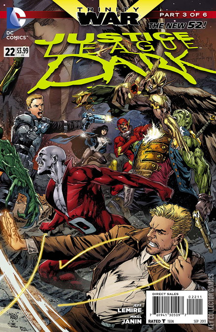TRINITY WAR, PART THREE: HOUSE OF CARDS The most shocking story of the year continues as Justice League Dark must battle both the Justice League and the Justice League of America in the wake of a murder you never thought possible! It's an extra-sized issue you won't want to miss! CONTINUED IN JUSTICE LEAGUE OF AMERICA #7 .