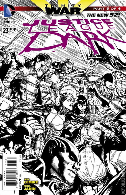 TRINITY WAR, PART FIVE The Justice Leagues continues to fracture as the murder of a hero is solved-and the line between justice and vengeance blurs as they head off to find those responsible! CONTINUED IN JUSTICE LEAGUE #23 .