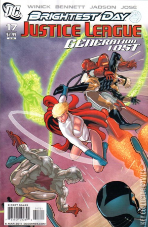 Max Lord's plan is coming together in issue #17. The United Nations revokes Checkmate's charter, Captain Atom is wanted for murder, and the JLI is still viewed as a colossal joke. Now the team will have to gather their wits to face a new enemy - Power Girl