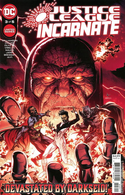 LOST IN THE WORLDS Doctor Multiverse is caught in the clutches of Darkseid! To save her, President Superman, Flashpoint Batman, and the rest of the Justice League Incarnate team up with Earth-41 heroes Spore and Nimrod Squad; meanwhile, a villain from Multiversity returns to stake their claim on the crack in the Multiverse and the power that lies beyond.