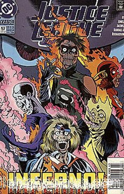 "Inferno!" The members of Justice League International are unconscious as the druids set fire to their castle headquarters. When Doctor Light comes round, she tries to get Godfrey to move everybody to safety, but there is no response - Flash and Elongated Man had told him not to respond to Kimiyo as a test of his abilities. However, her mysterious astral friend manages to possess Godfrey's body and carry everyone to a safer part of the castle until someone who can command Gofrey wakes up. With the help of intelligence gleaned by their invisible ally, the heroes take back the castle, but find themselves up against the powerful Grand Druid. This man is only defeated by Duke Donald. Once the druids have been taken away by the police, Elongated Man and Sue Dibny announce that they are leaving the League, largely due to the number of times Sue's life has been put in danger. They are to go traveling, and Duke Donald opts to accompany them.