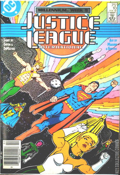 SOUL OF THE MACHINE This issue is week five of the Millennium Story Arch. In this issue there are two stories Soul of the Machine and Back at the Ranch Both stories involve the attack of the Manhunters on Earth. Neither story have many of the regular Justice League International (JLI) rosters.**Spoiler Warnings**Soul of the MachineIn Soul of the machine the only JLI member to end up going on the mission to infiltrate the Manhunter planet is Martian Manhunter. If you look at the cover you can see who else is with them. None of them being current JLI members. The planet of the Manhunters is a giant space station made to look like a planet. When the JLI infiltrate the the headquarters and find G'nort inside who had been wondering around the complex lost for quit a while. He had been wondering around in a sewer-like system for robots who do not excrete waste. The JLI ditch G'Nort and easily defeat the planet and it's millions of inhabitants. Literally in what must have only been a few minutes.Back at the RanchBlue Beetle (Ted Kord) and Mr. Miracle are standing out side a captured Manhunter space ship that is stationed outside the Green Lantern's Earth headquarters. When they investigate the ship a Grillian Mind Probe escapes the ship and affixes itself to Janwillim Kroef one of the chosen ones. As it sits on it's face it slowly heats up as it suffocates Jan. Mr. Miracle frantically tries to remove in when Kilowog arrives and simply pushes on off button that releases the probe. The of course embarrasses Mr. Miracle.