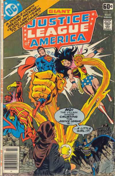 2,000 LIGHT-YEARS TO CHRISTMAS! Following an accident in space, three alien travelers lose the contents of their mysterious "carrying pouches," which land on various areas of Earth and cause a number of disasters. A stag becomes a rampaging creature, ecological protesters are changed into monsters, and an orphaned child in the Middle East gains supernatural powers. The Red Tornado calms and befriends the troubled young girl, and the other heroes deal with the remaining threats. But at the same time, Major Macabre, a would-be world conqueror, plans to gather the mystery objects and use them for his own benefit. A final battle is staged between a super-powerful Macabre and the Justice League members, which ends when Red Tornado locates the three aliens, who overcome the villain and retrieve their magical possessions. Red Tornado draws a parallel for his fellow members between the three aliens and the Christmas story of the three wise men, bearing gifts for the Christ-child.