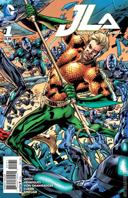 "Power and Glory Part One" - It's massive widescreen JUSTICE LEAGUE action and adventure from superstar writer/artist Bryan Hitch! In this extra-sized debut issue, the League comes up against an armada of aliens heading for Earth that claims to be a peaceful religious tribe. But something sinister is lurking in their ranks...something with ties to ancient Krypton! This amazing kick-off issue is available with seven different open-to-order variant covers by Bryan Hitch, each spotlighting one of seven core members of the JLA, plus an incredible 1:100 seven-panel foldout variant cover that presents all seven open-to-order covers together!