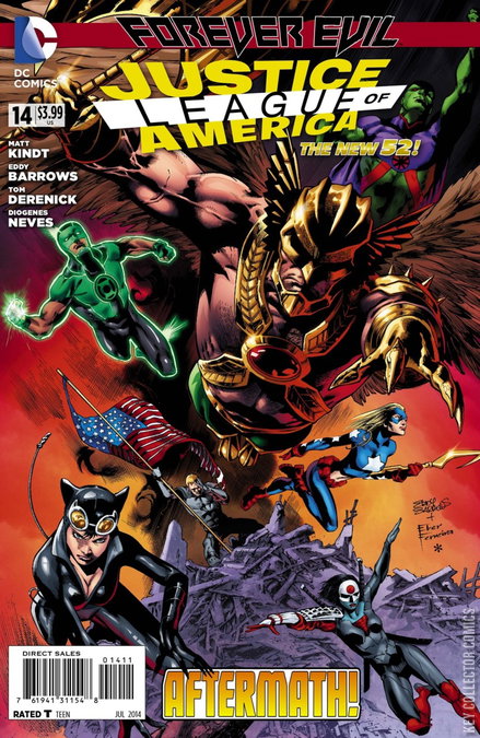DEBRIEF After telling Steve Trevor the details of her imprisonment within the Firestorm Matrix, Stargirl demands to know what happened outside; in the real world. Steve comments that she wouldn't believe him if he told her. Even so, he explains how Lex Luthor saved Superman's life, and the remaining heroes banded together to fight the Crime Syndicate. In her imprisonment, Courtney and the rest of the JLA were completely absent for the appearance of the parallel heroes from another earth. But the world is a different place since she got back - and she is different too. So, she waits, humoring Steve's need to keep secrets while he interrogates her - an ongoing thing for the last week. Asking about her teammates, Courtney learns that the JLA is now seen as bad guys. Catwoman - according to Steve - has returned to her life of crime, seeking a rare jewel. Courtney knows better, thanks to her experiences with Martian Manhunter. She knows Catwoman wants a fresh start - but on her own terms. To that end, Catwoman hacked her file from the A.R.G.U.S. databases, and replaced it with junk information so that she could disappear until she wanted to be found. Simon Baz the Green Lantern, who had a particularly harrowing emotional prison created for him in the Firestorm Matrix by Despero has at least recovered enough to help with the relief effort. Courtney knows, though, that he will still have lingering doubts. He had been forced to watch as others' fear of him as a Muslim man with power led to destruction. In the real world, though, she knows he'll be able to put that doubt behind him and rise above. Green Arrow meanwhile, wants to keep the JLA together - and he hopes that Simon Baz will stay with it. Even if the government dissolves the JLA as it previously existed, they might be able to change that by taking on threats bigger than just one man can handle alone. First, he hopes to seek out the others, beginning with Hawkman, but Simon refuses. His scans have picked up an anomaly on earth - some kind of power ring is hiding, and needs his attention. Katana is climbing mountains in the Himalayas training her discipline before beginning training with the monks of an ashram at the mountain's top. When she reaches the summit, she encounters Green Arrow, who hopes to lure her away from the Outsiders and enlist her in his renewed JLA. Unfortunately, she refuses. Martian Manhunter, meanwhile, is desperately searching A.R.G.U.S. for Courtney, who is being kept at a secret, psychically shielded safehouse. When he finally encounters Amanda Waller, she explains that she has essentially been silently ousted from her role at A.R.G.U.S., without being outright fired. Until then, though, she insists that she will keep doing her job. She believes that Stargirl hopes to put a positive spin on the issues with A.R.G.U.S. and the JLA, and keep the team going - and more power to her. She promises that Courtney is safe with Steve - and though Steve thinks he's interrogating her, the truth is that Amanda asked Courtney to interrogate Steve. Steve finishes telling Courtney everything he knows, and comments that he would love to see her get the team back together - but what chance do they have if America doesn't want a JLA? Steve and Amanda have essentially had their power stripped from them, and the League has been put in a box. If Courtney wants to get things going, she'll have to think outside of that box. The majority of the JLA's old members are busy or MIA - and that means she'll have to recruit new ones - probably from somewhere outside the US. Courtney finally steps outside to find the Martian Manhunter waiting. She admits that Waller placed her in charge, and she suspects that she and Trevor want her to put a new team together. Regardless of all the hate for the JLA of late, Courtney intends to follow through on her plan - with J'onn's help. As they make their way north, Courtney realizes that none of her team mates had ever really expected to be part of a team - never had the team spirit. It wasn't until after being trapped in the Firestorm Matrix with J'onn and the others that she realizes they all had pain they were carrying, and that it didn't need to be carried alone. The JLA was not so much a team as it was a family.