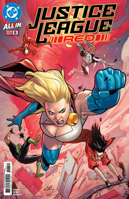 JUSTICE LEAGUE RED VERSUS RED TORNADO! Right or wrong, Black Adam has convinced the team the call is coming from inside the house, and they've returned to the Red Tower prepared to face Red Tornado. But are they ready to face his horrifying final form? And what transformation might this explosive confrontation provoke in Green Lantern, Power Girl, Cyborg, Red Canary, or Deadman?