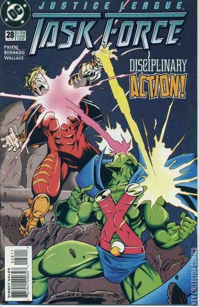 "Innocent" After a lengthy, brutal fight, Martian Manhunter defeats Triumph and kicks him off the team.
