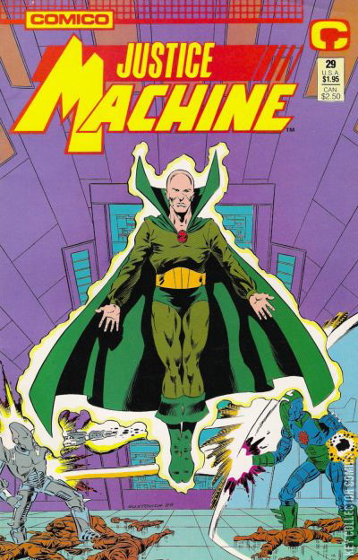 When the Justice Machine and Free Force release the captive inhabitants of New Atlantis, the city is reborn. And on Georwell, the cyborg Savior XVII deals Maxinor's rebel alliance receives a severe blow in "Home is Where the Harm Is." Script by Len Wein & Mike Gustovich and art by Mike Gustovich.