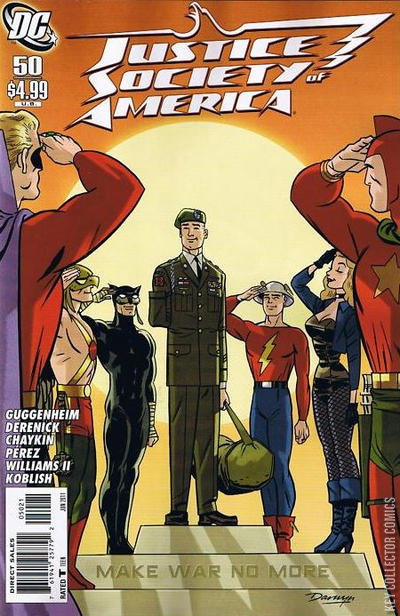 We're celebrating the fiftieth issue with an extra-sized spectacular and a roster of artists you won't want to miss! The team must explore a bizarre and fantastic underworld found beneath Monument Point... with the help of the one and only Challengers of the Unknown! And why was Senator Eagin out to get the JSA during the long-ago witch hunts against the mystery men?