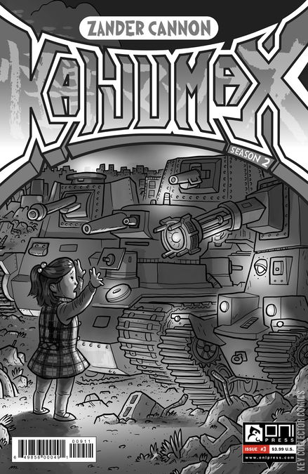 The stern administrator Matsumoto comes to oversee the final stages of Kaijumax’s repair, and her old-school inflexibility causes problems for Warden Kang. Electrogor dodges patrols on the open seas, heading for his children, while a mourning Officer Chisato gets a surprising new partner. Also: Space graveyards! Sympathy-shaming! Double-crosses! And… the adorable BeetoGor?